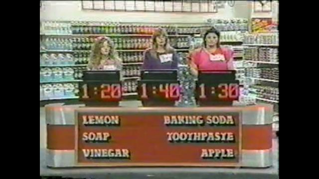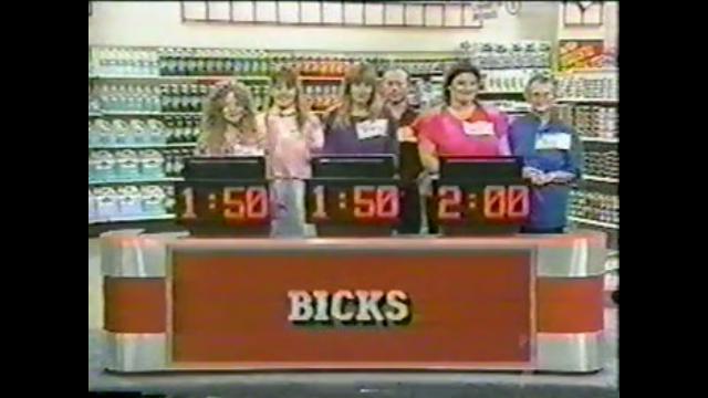 The game concludes with the round robin game. Tino reads up to 3 clues to a product, the team that solves it scores 10 seconds, after each answer partners switch. A total of 6 are played. I said before that Tino is condescending to the contestants this it’s most noticeable. The way he reads the clues reminds me of a teacher in school trying to lead the class to the answer to a question no one knows and he’ll repeat them over and over until the buzzer goes calling time or even try to throw another subtle hint in there. Just listen to how he handled this stumper in an earlier game. I HATE when he does this. The contestants are already worried about looking dumb on TV, they don’t need you to make them feel dumber.