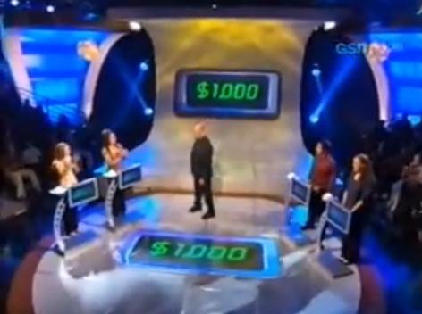 So, Deena gets no money for being the last to lock in. How exciting. After that piece of excitement, we get to meet the players. Corbin once again shows he is a very capable emcee here by having great banter with the players and all of that jazz. So, now we get back to the game, but this time it's a $2,000 Money Clock. The crowd cheers for the larger clock just as Richard Karn doubled the points on Family Feud. But, unlike the first money clock, the clock starts at $2,000 and counts down to $0. Also, if you're the first person to buzz in, then you get nothing. So, it's like the $1,000 money clock, except played backwards. Boy, nothing spells excitement and great gameplay like replaying Round 1, but only reversed.