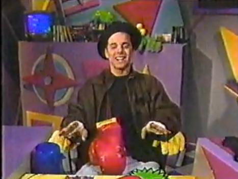 His name is Johnny Arcade, but his real name is Stivi Paskoski. When Video Power debuted it was a basic video game preview and tips show, mixed with a crappy cartoon show. When Johnny did the previews, he'd normally dress up in an outfit and do crappy impersonations. For example...