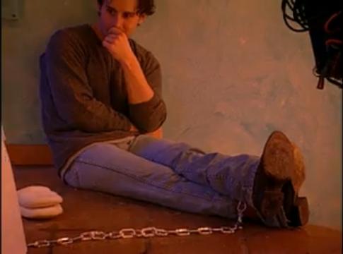 Well, after they all meet, they go to the ritual room, where they meet Ms. Blandsauce and Heavy L. In here, they give the rundown of what goes on, and how the proceedings work. Then we get to the actual part of the show that matters. They all get chained together.