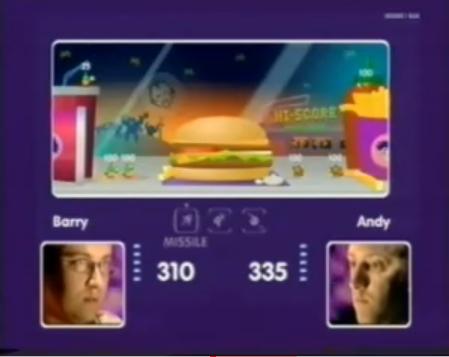 IT'S A GODDAMNED FREEWARE GAME! So, the two remaining contestants actually play a game, announced horribly by Johnny Showbiz, and I can't be bothered to care about this show anymore. I mean, the game involves bouncing bombs off of a damned hamburger. A HAMBURGER! The logic in that just escapes me. Anyways, highest score moves on in the tourney, and thank god this show's over. Where do I begin? Well, here's a checklist on a bad Video Game Game Show Doesn't play any real video