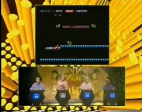 We then get into round 2, or as they say Level 2. It's called Screen Test. Ok, we see clips of games, but still nobody's playing a video game. So, we're batting 0 so far. The contestants watch a clip & have to guess what game is being shown. 10 points for a right answer and a bonus 5 for correct year of release is what's offered here. Now, what is wrong with this? Well, they should be playing some video games at this point. And what else is wrong...