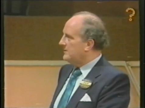"Garret FitzGerald" Now we got something here, the President of Ireland, or as they call it the Taioseach of Ireland. That's a good answer. The Crowd laughed, but that's a good answer. I mean it's miles better than the previous 6 answers combined. At least, he named somebody that was at least Irish.