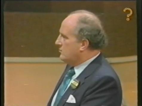 THE NUMBER 1 ANSWER!!!!!! Thank you Taffy. You are a testament to this game and sensible people in England who know some famous irishman. And like most sensible people, he decided to pass this question off to the other family. After that opening quandry, the Johnson Family had a good run by listing off George Best, who was #5; Eammon Andrews, who was #8. Bob said Gerry Fitt, who was an Irish MP, which didn't make the survey. Margaret had Hurricane Higgins, a great Irish Snooker player, but failed to make the list. Then we go back to Michael with Ian Paisley, who's #2. We go back to Brian with Val Doonican who was #7. Then we go to Jenny, who says...