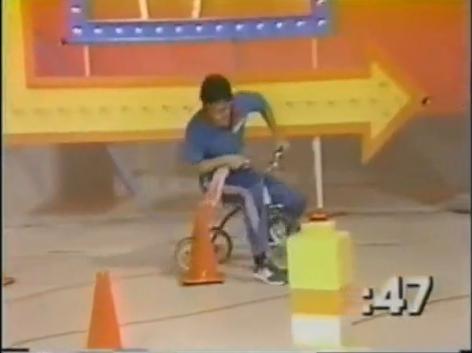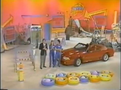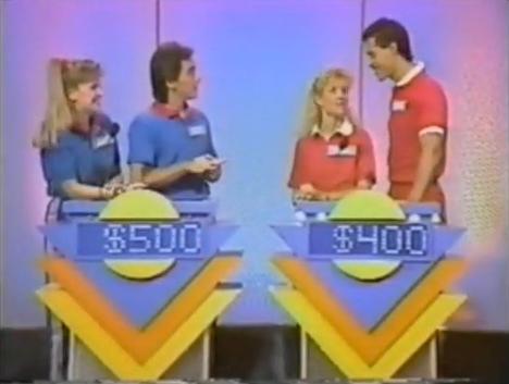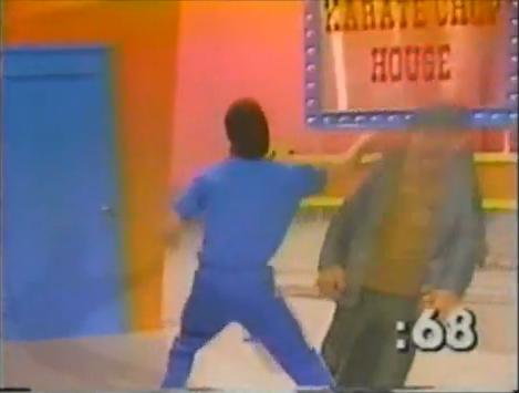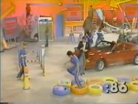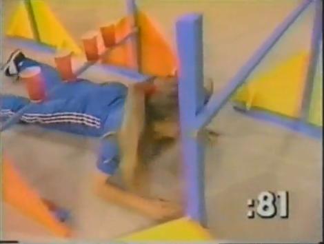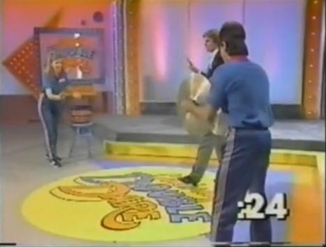 But do we get any mess in the physical challenge? Not really. I mean, in the Physical Challenge above, which was used in the original program, the contestants threw eggs and not tennis balls. It just seems more lame than anything else. Another thing that's lame is that there was an overhead clock on the actual show that ticked down. Instead, we get the cheaped out chyron clock instead. It makes the show more lame than it is. The second round is the same, except with double the dollar amounts, like the actual Double Dare show, except just as boring and mind-numing as round 1 was on this pilot.