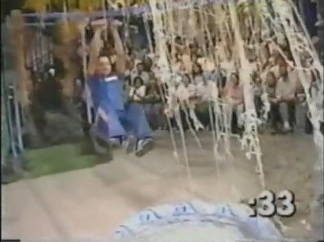 The questions on the show are unique in a way. Instead of multiple choice questions & other straightforward questions, the questions used on Celebrity Double Dare are 2-parters which must be answered by both teammates one at a time, sorta like what they did on the 2002 incarnation of Beat The Clock. What also gets me is the fact that instead of just saying dare, they "I dare you" or "I Double Dare You". Another thing that irked me is the fact that they don't let the teams confer unless they've been "I Double Dare You"ed. I guess that's because the producers made the brilliant move of putting the contestant podiums right beside each other. It's like they're trying too hard to stray away from what made the kids version what it is and try a sterilized adult version. What's also disheartening that it just seems so bland and boring compared to the kids version. The questions don't have any flavor to them, like the kids version did, and the teams don't seem to be enjoying themselves. Another boneheaded move was that instead of keeping control, they passed it off after each right answer, probably to ensure that a competitive game was being played. To be frank, most games of Double Dare were competitive, mainly because they were allowed to confer about an answer, and the questions weren't stupid 2-parters. It just seems so sterile. I mean, the physical challenges that they do are really really sterilized. What was Double Dare back in the day you ask. That's right, messy!