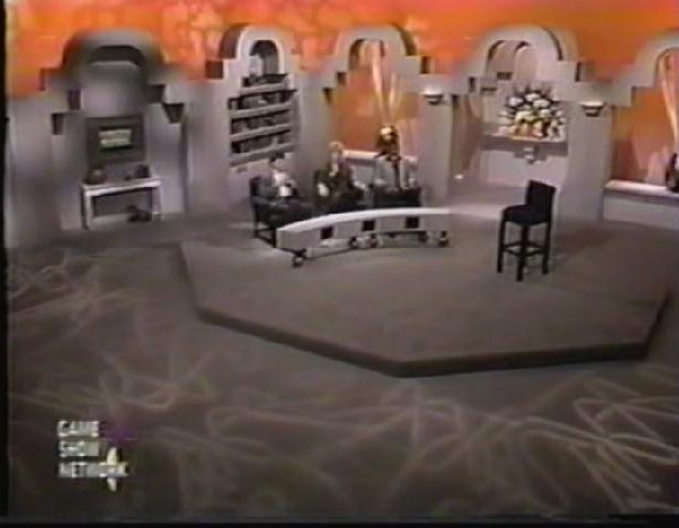 Now, the set. The Set has to be one of the cheapest sets I've seen. I mean, it's mainly made up of 3 cheap barcaloungers from 1979, some Ikea bookshelves, a table with 3 2-digit egg-crate readouts built into it. Oh, and a big chair that Pat would hover over, but never sit in. I think the only set cheaper at that time was another Dan Enright disaster in All About The Opposite Sex, which I'll get into sometime soon. But back to Hold Everything! I could make a game show out of my own house and it would be a much better looking set than this. I mean, when the best looking thing about the set is the readouts, then you've gone way below expectations. The gameplay is equally as stupid as the set & Pat Bullard. The celebrities...yeah, I forgot. This show features celebrities instead of regular contestants. I guess Dan Enright couldn't be bothered to get real contestants to play the game, so he had to pay bottom dollar to movers and shakers in the industry like...