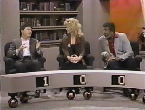 AHHHHHHHHHHHHHHHHHHHHHHHHHHHHHHHHHHHHHHHHHHHHHHHHHHHHHHHHH!!!!!!!! So, already we're going to be suffering. Yes, that's Pat Bullard. Don't let the late 80s mulletlicious hairstyle fool you. That is still the smarmy worm that I roasted in the Card Sharks 2001 induction. With this being 11 years earlier, he was just as bad, if not worse. I need to remind myself to do a full-scale induction on Pat Bullard in the future. In the beginning of the show, Pat Bullard said that "We'd be surprised and entertained as we reveal how people really are." He'd be better off by saying, "We're going to be showing you a bunch of unfunny segments and our celebs are going to be just as uninteresting. I mean, I'm one smarmy pile of goo and the only reason I got this job is because nobody else wanted this job anyways."