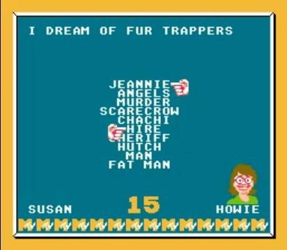 The only thing done decently in this big mess of a game is a worthwhile version of Think Real Fast. I mean, it actually plays sorta like the real version. A list of words are shown, and you have to find the right word that replaces the wrong word in the TV show or movie listed on the top of the screen. After some time, the round will end. Now after this round, you're supposed to be going to the kraftmatic adjustible Bed or at least the Wheel of Jeopardy for the bonus game...