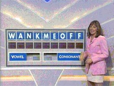 OH BUD, YOU ARE HILLIAROUS! THIS TRULY WILL NOT AGE AT ALL AND MEN WILL FORCE THEIR WIVES TO BE SUBSERVIENT FOR ALL HUMANITY! So finally the game starts. Each contestant gets one row and three of the numbers revealed. Each number has either a letter or a space and both rows spell out something related to the prize they will get. Each contestant then alternates calling numbers until one buzzes in and they can guess BOTH phrases...