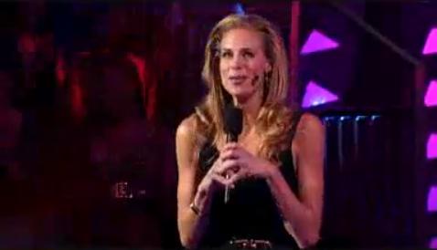 Yet, whenever we get to a game where it involves stripping, she's automatically entertained and ready to go. But then again, she's been around semi-nudity through most of her acting career with Baywatch and Shallow Hal. Even when the females have to take off clothing, she gets excited. Oddly enough, she gets really excited to the point of hearing-impairment screeching when she sends someone off to the dog pound with her trademark, "SEE YA!!!" That sound would make a dog run away in fear for its life. Either that or it was her mating call to Bruce Willis at the time. No, I'm not kidding, she actually was with Bruce Willis in 2003. Anyways, it's pretty much status quo aside from that, bland boring and uninterested. The show was cancelled in 2003, with a few episodes left unaired. Those episodes would be aired when GSN picked up the reruns of the show and reran the show to death from 2004-2006. Anyways, Brooke would go back to acting until 2008 when FOX had the brilliant idea to make a show based on a 8 minute Japanese comedy show bit called Human Tetris. They called it Hole In The Wall. Apparently, the show spread like wildfire all over the world and had versions in England, Australia, among other places. Our version though, had Mark Thompson doing announcing and the host was Brooke Burns. So, did she learn from her first experience?