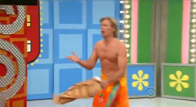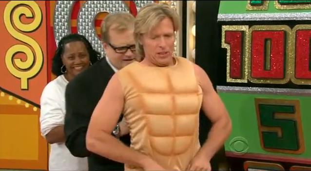 So, Drew helps him put on these fake muscles, so he can look like John Morrison on a bad day. And while that may be creepy, he does the worst thing ever seen on the Price Is Right...