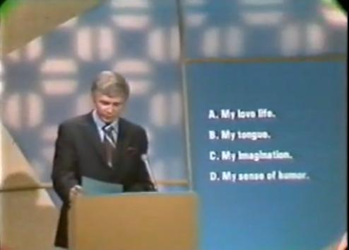 At the very end of the show, they get their final scores and what they rank. If the contestant correctly guesses their score was higher or lower than the celebs, they get $25 for each celeb they either outscored or underscored and it's $100 if all 3 are either outscored or underscored. The payouts for 1969 are ok, and the contestant gets a decent prize even if they don't correctly predict the outcome. It just seems that they just threw that portion on there so it would be labeled as a game show. Yes, it's about as boring as it sounds. I mean, I know tons of people do those profile things every now and again on Facebook and other websites, I just don't think that it's strong enough to build an entire game show around, and this was back in 1969, where those types of fun surveys were over-populating magazines at that time. The biggest thing I can say is that this is just a marginal game at best. I mean, the only game thing here is predicting if you're going to outscore or underscore the celebs in the beginning. Aside from that, there's no game here. It's just having a TV psychiatric evaluation done by some of Chuck Barris's crack research staff and shrinks from the LA County area. Barris would get his groove back when he would come out with Treasure Hunt and The Gong Show in the 1970s, but his last efforts of the decade turned out to be his undoing. All I have to say is that when he makes a hit, it's a hit, when he makes a bomb, man is it ever a bomb. Have any questions about the site? Submit them to us via our Facebook page, our Twitter, and through e-mail. We'll be sure to answer them to the very best of our ability. (c) 2016 - A CQS Production in association with