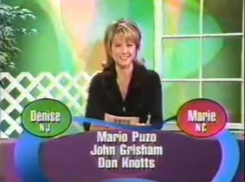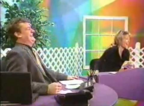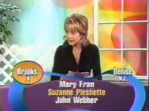 After another go-round with two new contestants, the winners from both rounds compete in one final round for one more prize. This time the rules are changed a bit. They ping-pong back and forth questions until one contestant gets the question wrong. Then their opponent only has to answer 1 more question to win the prize. You know, come to think of it, if that was the format for the entire show, then it would have been so much better than what the show eventually became, gameplay wise. But still, at least that's too much to hope for when it comes to a late 90s GSN original. I mean, this was during the Michael Fleming era. The same guy who gave us great shows like Burt Luddin's Love Buffet, Inquizition, Extreme Gong, Throut and Neck, All New 3's a Crowd & Mall Masters. I don't know what it is about these shows that require some uncomfortable banter between host and co-host. I mean, it doesn't get much uncomfortable when it comes to talking about what the people got in their congratulations on the new show baskets. I mean, when the height of the show is derwood Webber eating pickled Carrots...there's something wrong. I guess that John Webber is a comedian, so he has to be funny, but most of the time it comes off as forced.