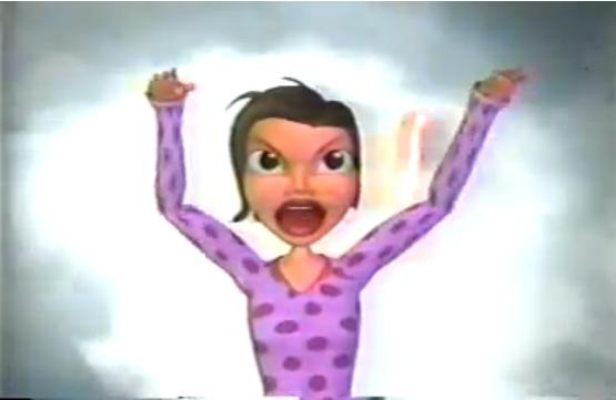 Enter Cyber Lucy. She is a Motion-captured creation that acts as David Sidoni's sidekick, announcer, letter person and whatnot. She's portrayed by Tanika Ray. Unfortunately, while she may be a nice actress and dancer, her demeanor here, along with her announcing skills kinda make me yearn for Tiffany Phelps from Double Dare 2000. She was loud, trying too hard to be hip, and since she was completely motion-captured, her movements gave me the impression that she was high or something like that during her time on this show. Now, when I was a kid, her bulging eyes and her overall look gave me the heeby-jeebies, so her look is more to blame of the designers than her.