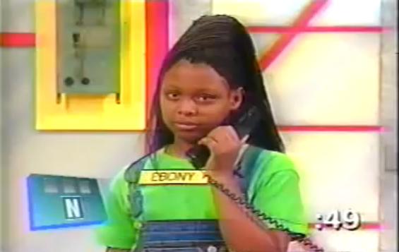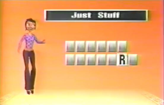 Firstly, I need to talk about the presentation of the game. During this time, the kids on this show have seen what Wheel of Fortune looked like, the big wheel, the big board, all that stuff. Here..it seems as if Scott Sternberg decided that he wanted to revamp it. So instead, we get something that looks more like it's trying too hard to be hip with neon, tons of monitors in the background, a factory design for some very odd reason, a wheel that didn't need to be changed, and probably the biggest sin...