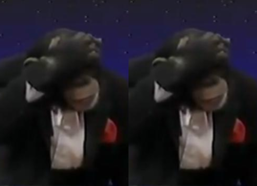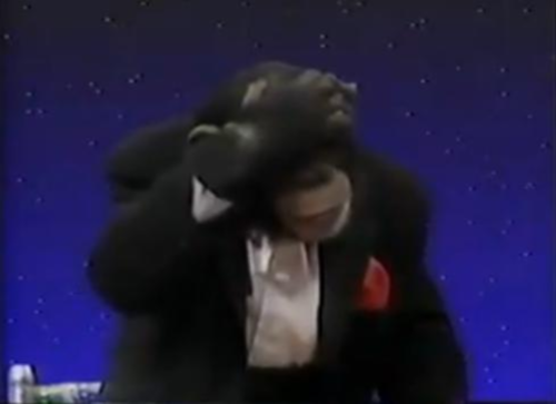 acting like Steve Harvey would after a perverted answer makes it on the