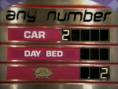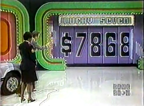 And now she's playing One Away. Now you're thinking that since she's playing for a Lincoln Mark 7, she'd know that it's more than $20,000. So the first number to change should be a given. It needs to be changed to a three, but does she?