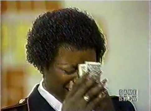 Then in one of the funnier moments of the show's history, an audience member yells out, "GIVE IT TO HER!" Bob then quips "I'M ABOUT AS APT TO GIVE IT TO HER AS I AM TO GIVE HER MY HOUSE!" Still a very funny way to end a very sad playing of the game.