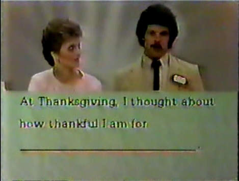 The Host: Bob Goen with his sweet 80s pornstache. I feel really sorry for Bob. He's hosted so many stinkers like The Home Shopping Game, Blackout and Born Lucky. However, unlike the shows themselves, Bob has always hosted the shows very well. He's like Corbin Bernsen in the way that he could make a really terrible show very watchable. Also, if you note in the beginning, it opens with a very "Newlywed Game" esque open. However, what's different is that the couples come in when Bob introduces them instead of the announcer, which is Johnny Gilbert. So, you have a really good host, and announcer and the set looks flashy enough.