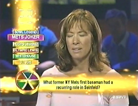 The game is ok, but nothing spectacular. Lodge asks an either/or question and the teams buzz in with an answer. If you get it right, your team gets control, get it wrong and the other team gets control. By then, Lodge then reveals the categories, 4 dealing with sports and 2 dealing with Pop Culture.