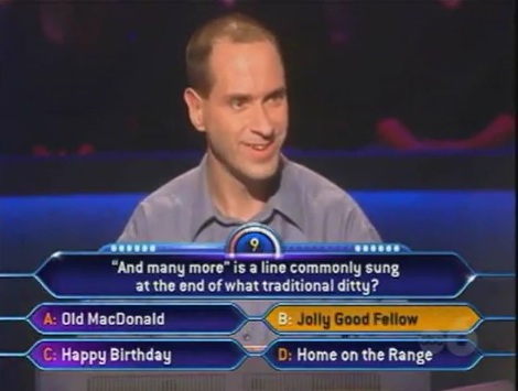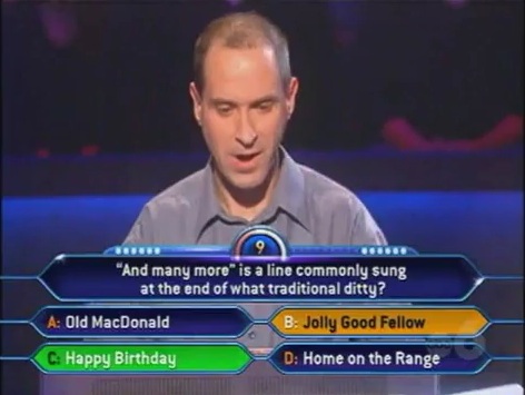 So with that, we're going to the clock version of Millionaire and to a really rare moment in the shows history.