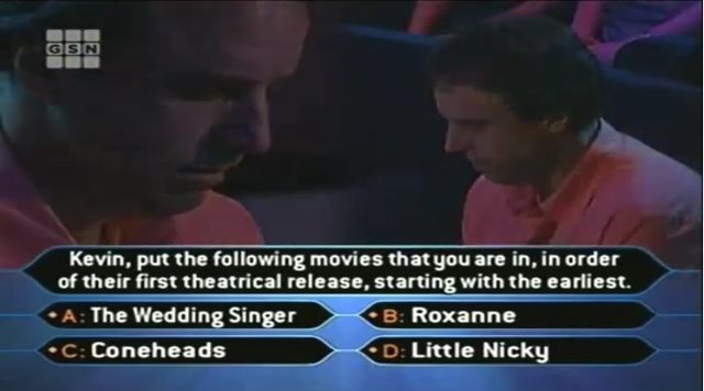 A: The Wedding Singer, B: Roxanne, C: Coneheads, D: Little Nicky