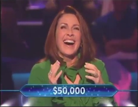 In short, she gets it right and the $50,000. To which, me, the audience there and at home share Regis's sentiments.
