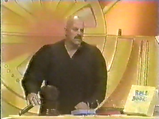 Anyways, his real name is Rick Zumwalt. He was a professional Arm Wrestler, best known as being one of the guys that had to take on Stallone on Over The Top. Here, he proved he was also a damned good actor. I mean, he played his role of judge to a T. I mean, he also could explain the rules to each round better than Brian possibly could. Why couldn't he have been the host instead? I guess he would have intimidated the contestants with his presence. I mean, just looking at him gives me the heebie-jeebies.
