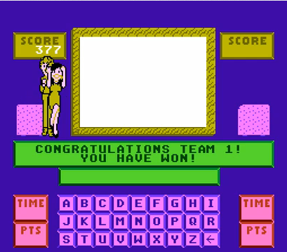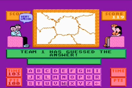 To compound the lameness, every time you get a puzzle right, your side does this celebration with a dorky line like "Rad" or "Sweet" or "Very Special". Those types of celebratory lines should be saved for games like the Fisher Price games, or even Earthbound (Yes, when you got a level up, sometimes the game would say Sweet!). I understand it's supposed to be cool in ways, but this just makes an already lame game seem like it was made in 2 weeks. The music was the same bed over and over again. I'm just happy that it wasn't the 8-bit version of the theme song over and over again like Remote Control was. However, it's more annoying than that, especially when you hear the puzzle right music. I'm not going to have it here for you, you're going to have to YouTube it yourself.