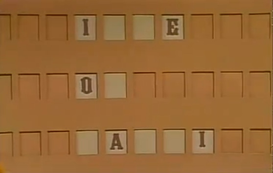 The bonus game is played like the current one, but much more lame. The contestant is shown a prize, but all the consonants are taken out. The contestant has 30 seconds to guess as many letters as they can and try to solve the puzzle. This brings up tons of flaws already, since anyone with half a brain can just rattle off consonants, fill the puzzle and win the prize in 20 seconds. This is probably why Merv dropped the idea of the bonus round until 1978 with the Star Bonus icon on the wheel.