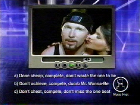 The show is broken up into three rounds with the first not having any semblance of the name of the show itself. The contestants choose from one of three "games" and either have to figure out the lyrics to some hard to understand lyrics, sing the next line in the video, figure out the lyrics from a remixed rhyme that the writers came up with and other variants on those. While this would be fine for a regular show, but here's the main problem: The show is Name that VIDEO! Not a remix of Sing Along With Colin from Remote Control. Oh, and to add to the list of better thans that I have on here, Jarrod Spektor would have made a better host than Karyn Bryant.