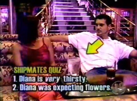 This show starts off with a familiar face in the dating game show world. Singled Out host Chris Hardwick takes the wheel in this voyage. While I thought he was utterly deplorable on Trashed, he did a good job when Singled Out was on and he did ok here on Shipmates. However, it needs to be known that he really didn't do all that much on this show. He would basically intro the couples and other segments on the show, in his own sarcastic way. More often than not, the sarcasm was hilarious. He would also make some random comments during the date in pop-up video style breaks from the date, but we'll get to those later and how they affected this show.