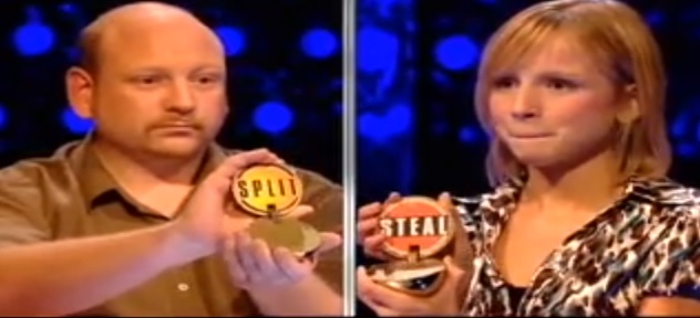 ....The goddamned Prisoner's Dilemma style endgame. We watch game shows to see winners, but when we see this end game, more often than not, somebody's getting screwed out of something. Personally, I view game shows as an escape. When I see this end game, I immediately go into angry viewer mode at the fact that something bad is going to go down. Not only that, this mechanic is just too damned lazy and overplayed. Especially when it comes to the UK, when screwing either the contestants or having the contestants screw each other out of money was the big thing, especially in the 2000s with shows such as Divided and Shafted showed how low the conciousness of the Brits could go when big money is at stake. I absolutely hate the mechanic and it just killed a decent first half of an end game. A better end game would be like the one used in Take It Or Leave It from Challenge, except slightly modified, where there were 6 balls and the two contestants picked one. Either it would be the Golden Ball i.e. the entire jackpot built from part 1, a percentage of such, (75%, 50%, 25% or 10%) and a Killer ball where they end up with nothing. That would have been a much better ending and would have kept up the luck aspect of the show, while hollow, rather than the darker aspect of screwing someone out of money.