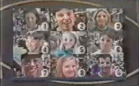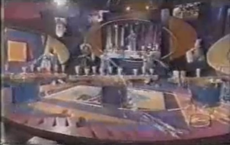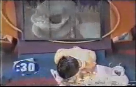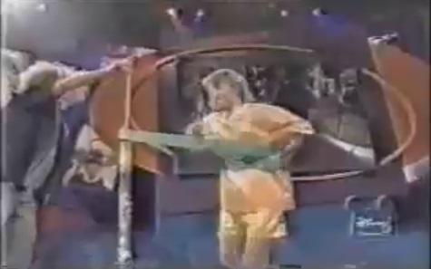 The final round is the Head To Head Challenge where the final two contestants from each team compete against one video challenger. The stunt plays like all the others but the points are different. If you beat your opponent, you get 250 points. If you beat the video challenger, you get 300 points for a possible total of 550 points to be won. This brings us to "How Not To Produce A Game Show" Example #33: DO NOT make the last round make all previous rounds completely pointless. Here's the worst case scenario for this show. The Gold team is blanked and the Blue team wins both challenges with Double Trouble in round 2 for 500 points. Then the final round and the Gold Team's third player beats the Blue Teams player and the video wall for the maximum 550, and the gold team player blanks, making the gold team the winners for doing nothing for two rounds. Yeah, other golden examples of this are Go For It! and to a lesser extent Fun House. Many would claim Shop Til You Drop would fit here, but if you win a stunt, you get a prize as well, so if you do lose at the end, you got some good stuff and the game was still worthwhile, especially if you get that mini-vacation. Here, the losing team gets tickets to Disneyland. The winning team faces off against a contestant picked out of the audience in the Ultimate Showdown, sadly not of Ultimate Destiny.