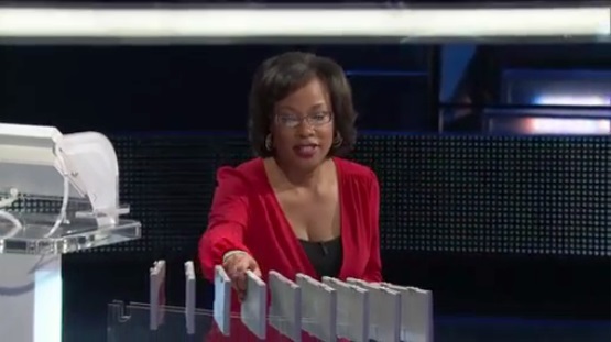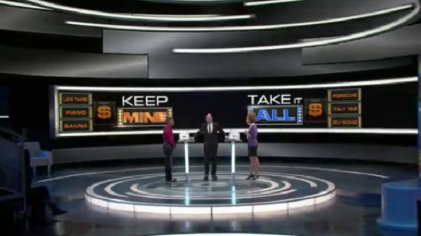 The Final Round is called The Prize Fight. I'm not going to mess around here, it's the terrible Prisoner's Dilemma I railed against when I did Golden Balls a few months ago on this site. I'm not going to repeat myself. If you want to read my feelings about that mechanic, read it over there. The only difference is that before the game, each contestant selects an envelope with a money amount inside. If anybody gets the prizes, they get the money amount they chose or both, if they take away everything from the game.