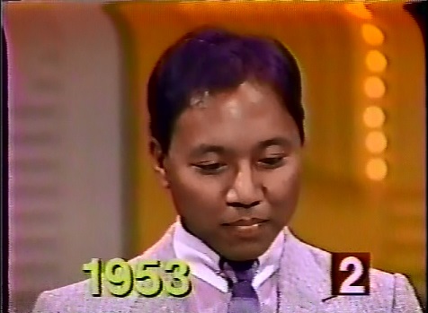 The final game of Set 1 is a brand new game in The Jukebox Game. In this game, four jukeboxes were rolled out with a year in each one. John would cue up a piece of music and give two artists, the contestant must match up the artist of the song and then match the year from the four jukeboxes. If the contestants do that, then they earn a point. After all four jukeboxes were exhausted, then all the contestant has to do is identify the artist to get the point. The first person to get 3 points wins a prize. It reminds me of the opening round of Face The Music, but more often than not, contestants would miss years more often than get them right, so The Jukebox Game tended to drag quite a bit.