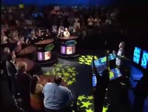The set deserves another mention in its cheapness and horribleness. It's five podiums with some tacky scoring readout, with three lights that turn either green or red, and we'll get to why later, and tacked onto it two big, ugly monitors with all the potential money that can be won. It makes the studio looked very cramped, and it is. with all the set pieces, it looks like the audience pit takes up most of the set. Another major complain: Who's bright idea was it to hand out the audience the safe/risk placards? It's a gigantic distraction and makes the production seem even more amateur and terrible.