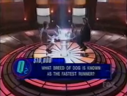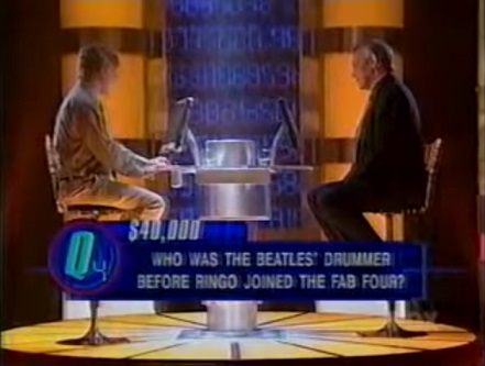 The rest of the game is a 9 question gauntlet. The contestant is shown a list of categories and the computer will randomly pick a category. The first question is worth $5,000. After the first question, the contestant has to gamble at least half of their money on the next question. The questions get harder after the third and sixth questions with the lighting and background changing, like how Millionaire's background and lighting gets darker and darker after each question after getting to the $2,000 question. I guess the difference between this and Millionaire is the questions are straight-forward and have no choices and a two minute clock per question. It reminds me of the line Vanilla Ice uttered when pressed by journalists about him ripping off Under Pressure by Queen for Ice Ice Baby. But only if there were something we can say they use similar to Millionaire that could seal the deal...