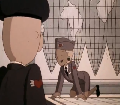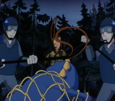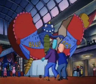 Realizing Herman is in the giant heart, Doug and Skeeter try to escape