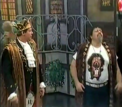 Piper and a thankfully clothed Captain Lou Albano performing a scene