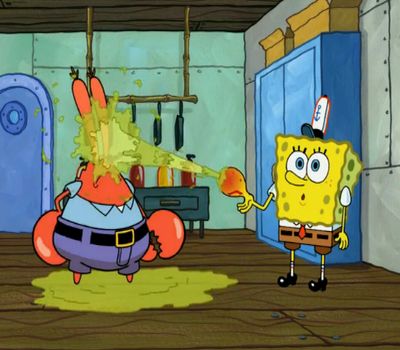 about the possibility of Mr. Krabs sending Spongebob home. Of course,